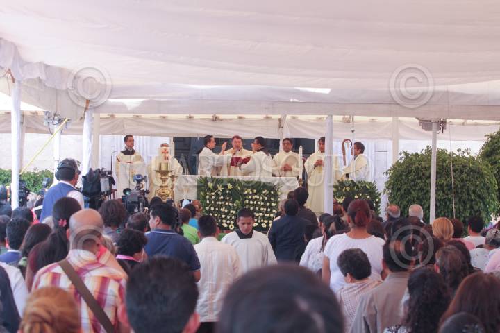 MÉXICO, D.F., 10MAYO2013.- Eruviel Ávila Villegas gobernador del estado, acudió a la misa que oficio el nuncio apostólico Christopher Pierre a las victimas de explosión de una pipa de gas en la colonia San Pedro Xalostoc, donde perdieron la vida 24 personas. FOTO: SAÚL LÓPEZ /CUARTOSCURO.COM