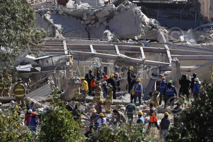 MEXICO, D.F., 29ENERO2015.- Un saldo preliminar de 4 muertos y más de 50 heridos hasta el momento, es lo que ha dejado una explosión ocasionada por una pipa de gas en el Hospital Materno Infantil de Cuajimalpa. De acuerdo con declaraciones del chofer de la pipa, la manguera del combustble presentaba una fuga, lo que incendió el gas y posteriormente estalló el cilindro. El hospital quedó prácticamente reducido a escombros. FOTO: SAÚL LÓPEZ /CUARTOSCURO.COM