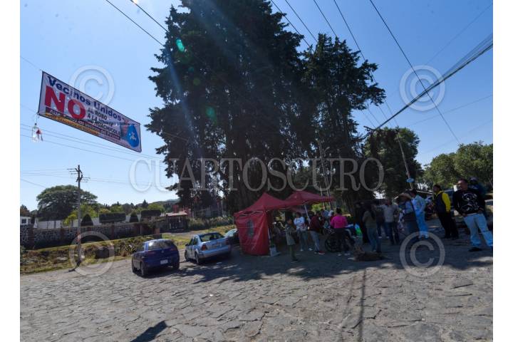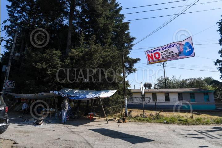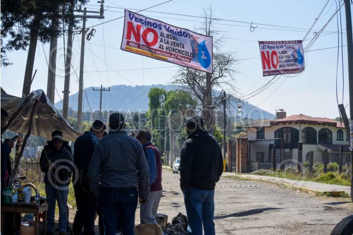 OCOYOACAC, ESTADO DE MÉXICO, 01ABRIL2025.- Habitantes de la colonia Pirame, en el municipio de Ocoyoacac, desde el pasado viernes instalaron campamentos para cuidar el vital líquido, ante la extracción y venta irregular que se registra por parte de pipas privadas, lo que ha provocado que el suministro de agua en esta zona y comunidades aledañas se viera disminuido considerablemente, se ha cortado el paso de pipas para impedir continúen con el saqueo de agua, por esta zona pasa el acueducto del Alto Lerma; cansados de esta situación hacen un llamado a las autoridades en los tres niveles para que sea regulada esta práctica así como se garantice el abastecimiento de agua sin que unos cuantos estén enriqueciéndose por su venta de manera irregular. FOTO: CRISANTA ESPINOSA AGUILAR /CUARTOSCURO.COM