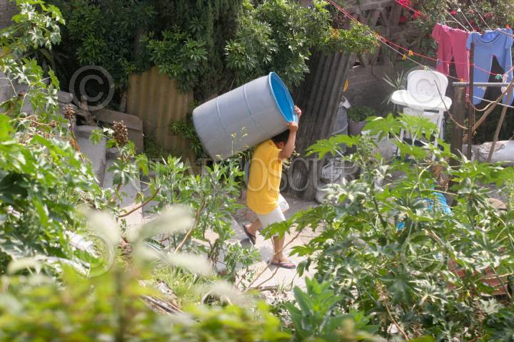 MÉXICO, D.F., 23JULIO2009.- Subir y bajar tambos por las colinas es un esforzó que realizan vecinos de la colonia conocida como el mirador en la delegación Gustavo A. Madero donde por mas de 20 años han sufrido la falta de agua a pesar de que ya cuentan con la tubería y el drenaje necesario para surtir el liquido. Los colonos solo son surtidos por pipas que reparten y abastecen los tinacos dos veces por semana, cuando llega el día en que sus tinacos son llenados los colonos forman sus tinacos para que los llamados piperos sirvan una porción que equivale 4 tambos por vivienda. FOTO: RICARDO CASTELAN/CUARTOSCURO.COM