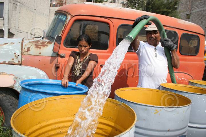 MÉXICO, D.F., 23JULIO2009.- Piperos llenan 2 veces por semana los tambos de vecinos de la colonia conocida como el mirador de la delegación Gustavo A. Madero donde por mas de 20 años han sufrido la falta de agua a pesar de que ya cuentan con la tubería y el drenaje necesario para surtir el liquido, estos piperos solo surte 4 tambos por familia, desde muy temprano llegan a las calles donde los colonos forman sus tambos para la repartición de agua FOTO: RICARDO CASTELAN/CUARTOSCURO.COM