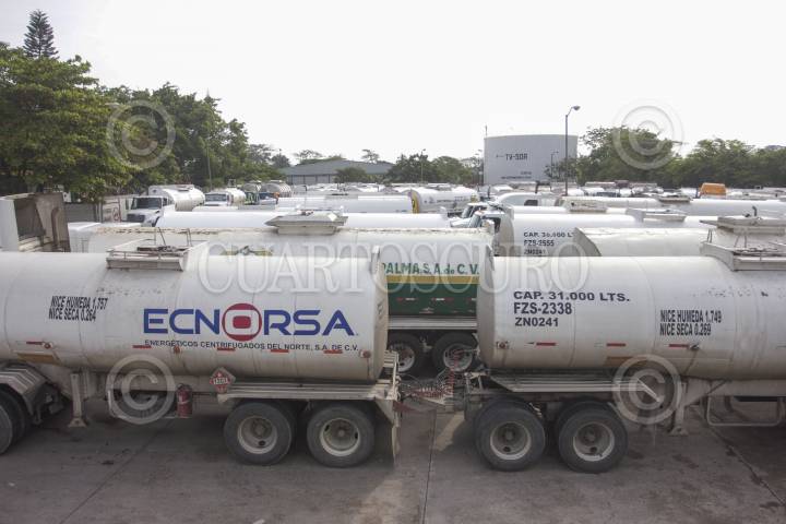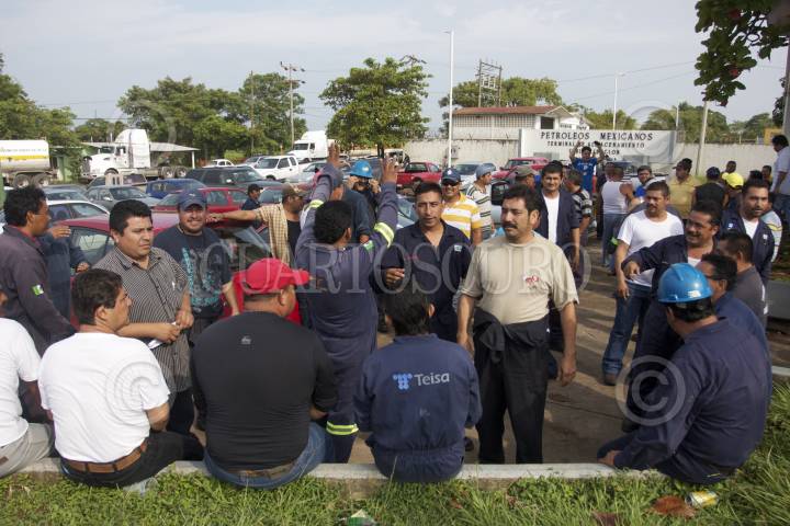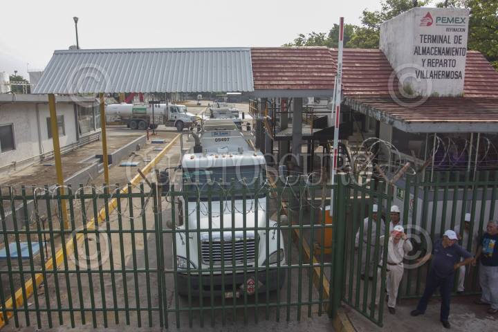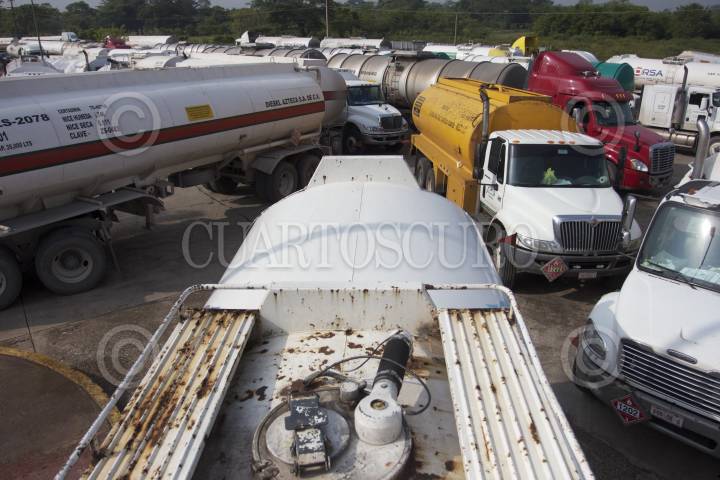 VILLAHERMOSA, TABASCO, 04OCTUBRE2012.- Al menos dos centenares de piperos de distintas localidades del sureste mexicano mantienen bloqueado las instalaciones de la Terminal de Almacenamiento y Distribución de gasolina de PEMEX ubicado en el complejo Campo Carrizo. Los inconformes optaron por estas medidas desde anoche, e indican que lo anterior se debe a que directivos de este complejo les proporcionan malos tratos laborales y preferencias a las pipas de la empresa de Petróleos Mexicanos; ademas no permiten el acceso y salida de ningún tipo de camión torton, y varias unidades quedaron atrapadas. FOTO: MARCO POLO GUZMAN HERNANDEZ /CUARTOSCURO.COM