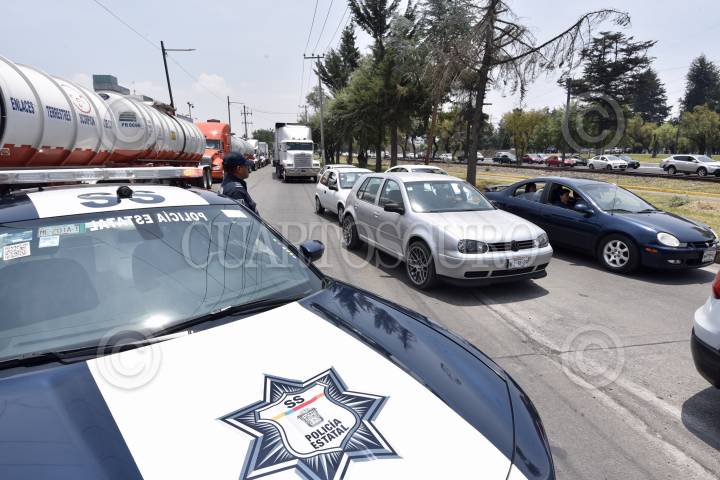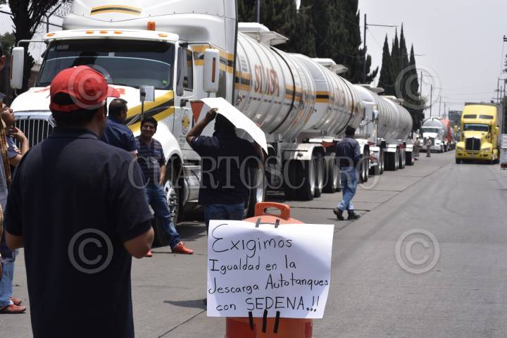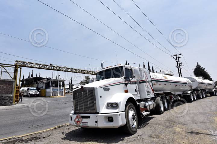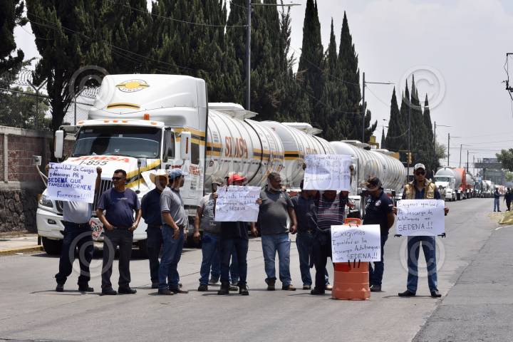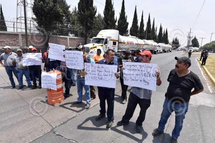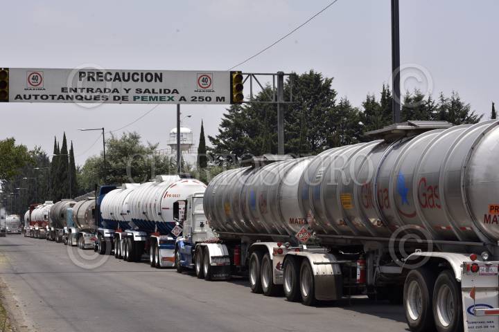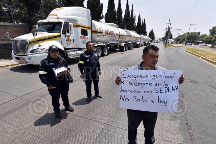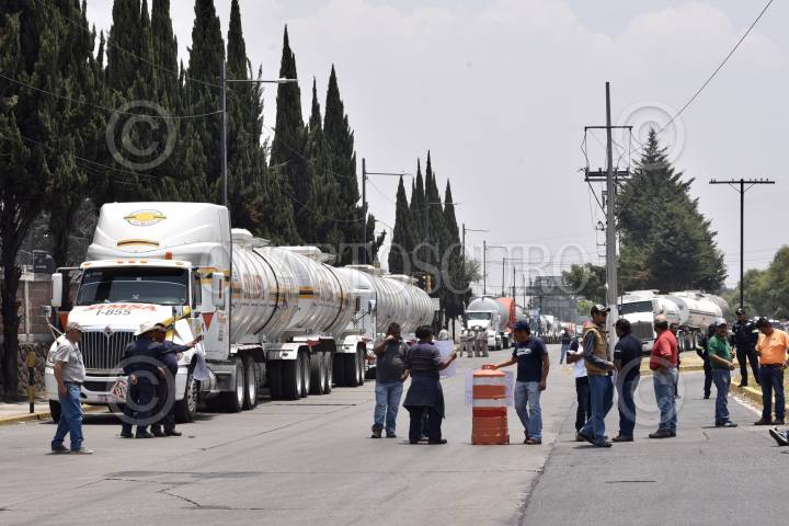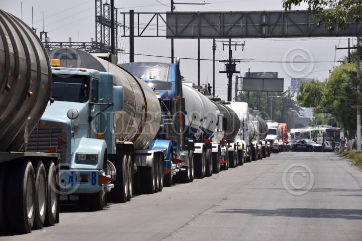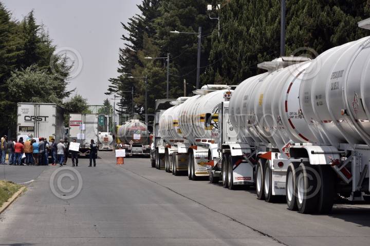 TOLUCA, ESTADO DE MÉXICO, 26ABRIL2019.- Choferes de pipas mantuvieron bloqueado por varias horas el carril de baja velocidad de Paseo Tollocan en el centro de distribución de PEMEX exigiendo sea equitativo el tiempo de espera para cargar y descargar de ellos y las pipas contratadas por el Gobierno Federal para distribuir el combustible, teniendo que esperar hasta 5 días para poder realizar alguna maniobra en el lugar. FOTO: CRISANTA ESPINOSA AGUILAR /CUARTOSCURO.COM