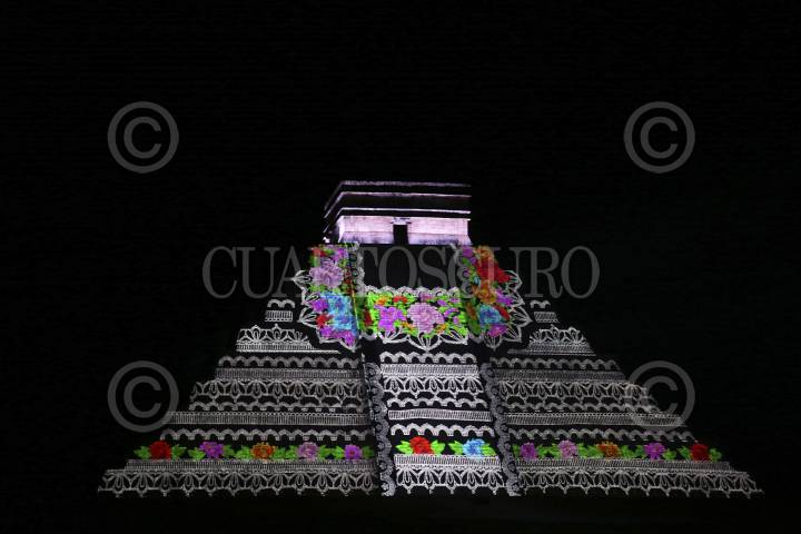 CIUDAD DE MÉXICO, 18AGOSTO2024.- La Secretaría de Cultura de la Ciudad de México informa que este domingo concluyó la exhibición de la réplica de la Pirámide de Kukulcán, que, en conjunto con la X Fiesta de las Culturas Indígenas, Pueblos y Barrios Originarios 2024, recibió a más de 1.6 millones de visitantes desde su inauguración el pasado 12 de julio en el Zócalo capitalino, con el objetivo de celebrar y conmemorar la herencia cultural de la civilización maya. Esta reproducción de 15 metros de altura de la edificación prehispánica conocida como “El Castillo”, que se ubica en la ciudad de Chichén Itzá, en Yucatán, formó parte del espectáculo audiovisual FOTO: GOBIERNO DE LA CIUDAD DE MÉXICO/CUARTOSCURO.COM