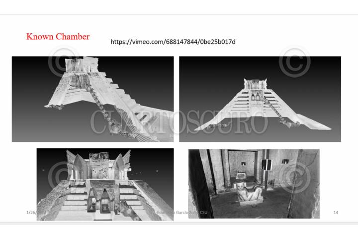 CIUDAD DE MÉXICO, 19FEBRERO2024. El Instituto de Física (IF) de la UNAM participa en el proyecto internacional NAUM, siglas en inglés de Muografía para usos Arqueológicos No Invasiva, mediante el cual se espera obtener, a partir del verano próximo, la “radiografía” de la pirámide de Kukulcán, en la zona arqueológica de Chichén Itzá, Yucatán. La meta, explicaron el investigador y exdirector de esa entidad universitaria, Arturo Menchaca Rocha; y el profesor e investigador de la Universidad Estatal de Chicago (CSU), Estados Unidos, Edmundo García Solís, es obtener la imagen de las “entrañas” de El Castillo, con la ayuda de detectores de rayos cósmicos, y comprobar la existencia de alguna cámara oculta en la segunda subestructura, por debajo del emblemático edificio. FOTO: UNAM/CUARTOSCURO.COM