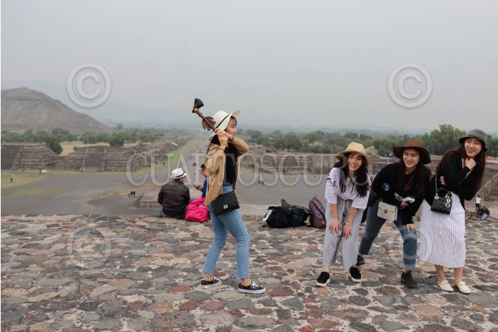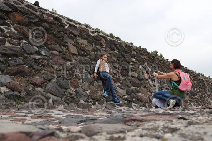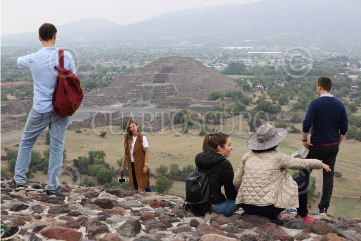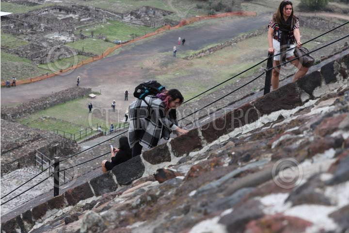Cientos de turistas visitan la zona arqueológica de Teotihuacan.