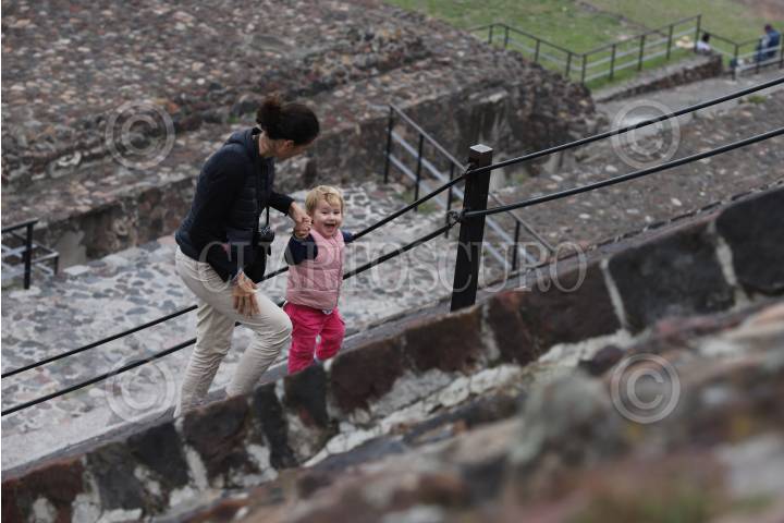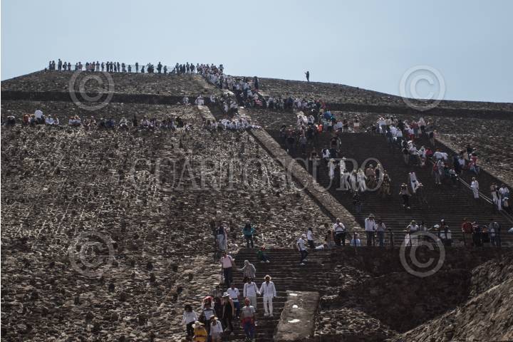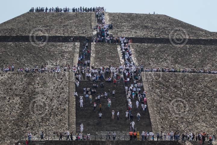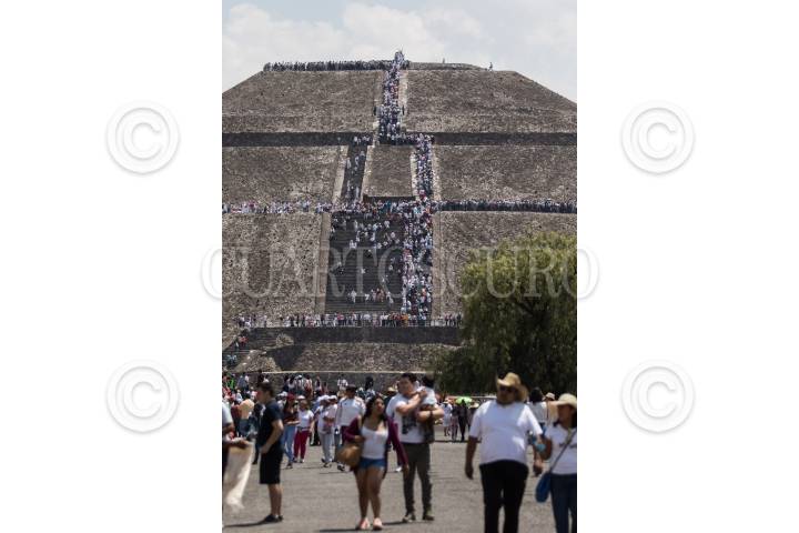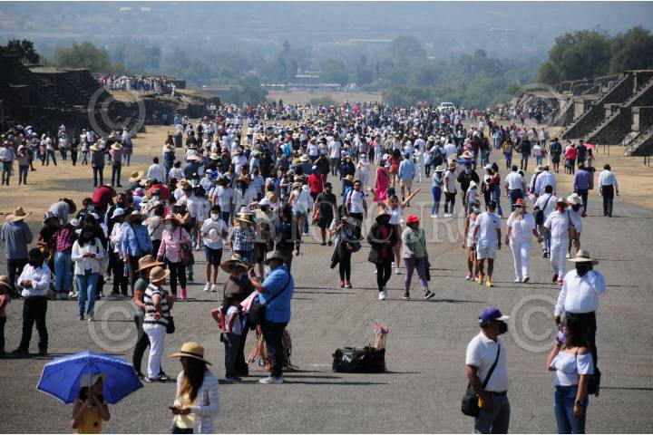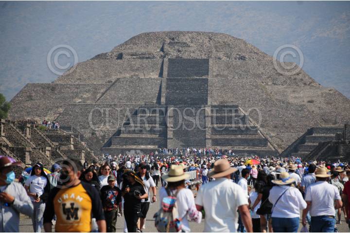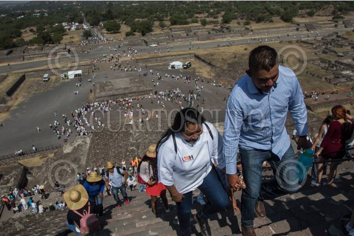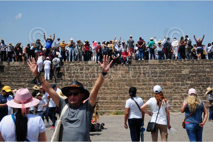 Cientos de turistas visitan las piramides de Teotihuacan.