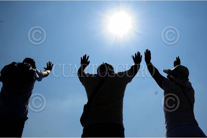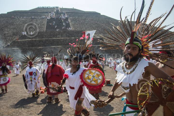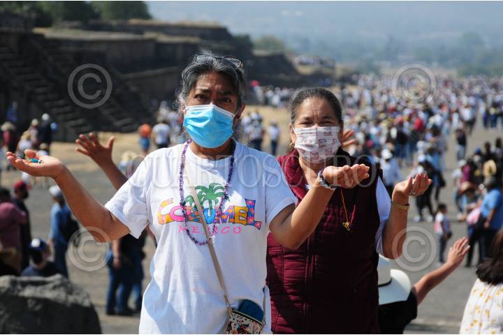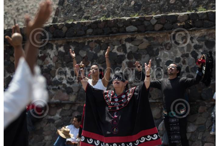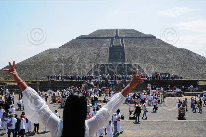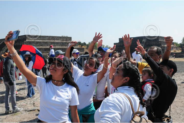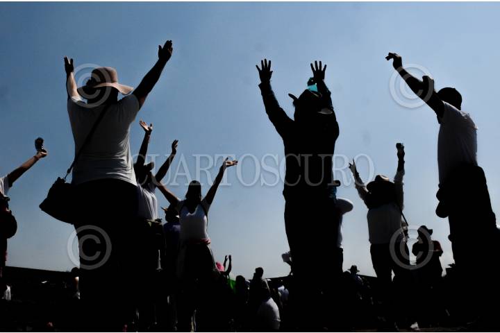 TEOTIHUACÁN, ESTADO DE MÉXICO, 21MARZO2019.- Miles de personas acudieron a la Pirámide del Sol para cargarse de energía este día que se celebra la entrada de la Primavera, a pesar de que el Equinoccio ocurrió ayer a las 15:58 horas. FOTO: ISAAC ESQUIVEL /CUARTOSCURO.COM
