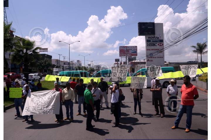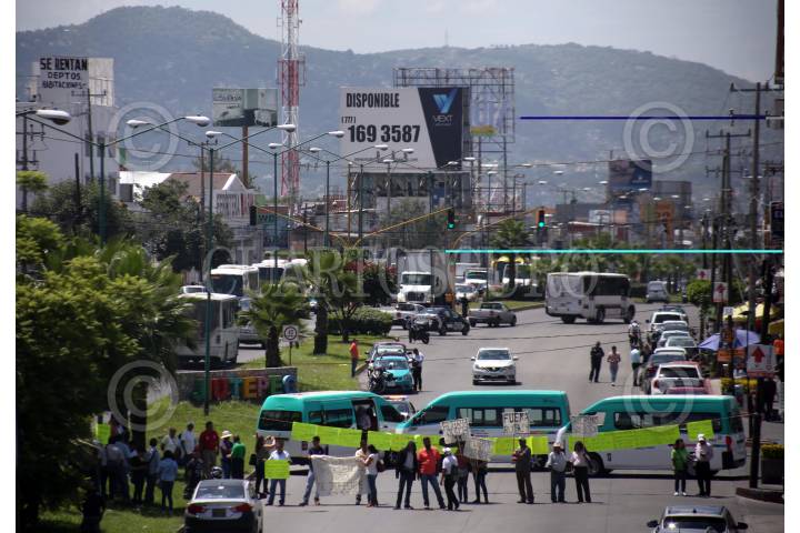 JIUTEPEC, MORELOS, 17JULIO2018.- Bloqueo frente a la Secretaria de Movilidad del estado, por parte de conductores y permisionarios de la ruta 14, los cuales piden que las unidades piratas dejen de circular. FOTO: MARGARITO PÉREZ RETANA /CUARTOSCURO.COM