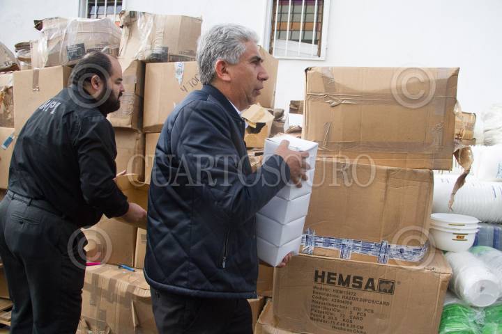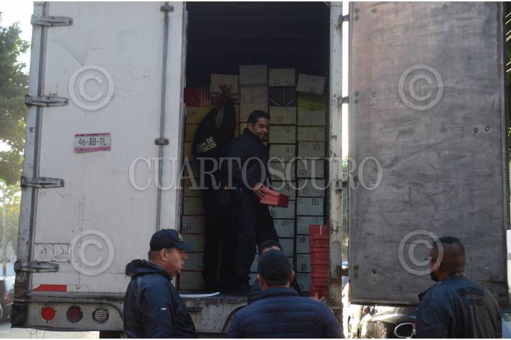 CIUDAD DE MÉXICO, 21AGOSTO2019.- Elementos de la policía de investigación decomisaron un camión con tenis presuntamente piratas, los cuales fueron trasladados a la agencia 50 del Ministerio Público, los hechos sucedieron en avenida circunvalación entre Manuel Doblado y Berriozábal en la colonia Morelos. FOTO: ARMANDO MONROY/CUARTOSCURO.COM
