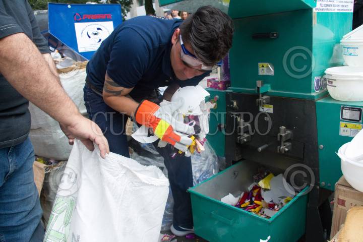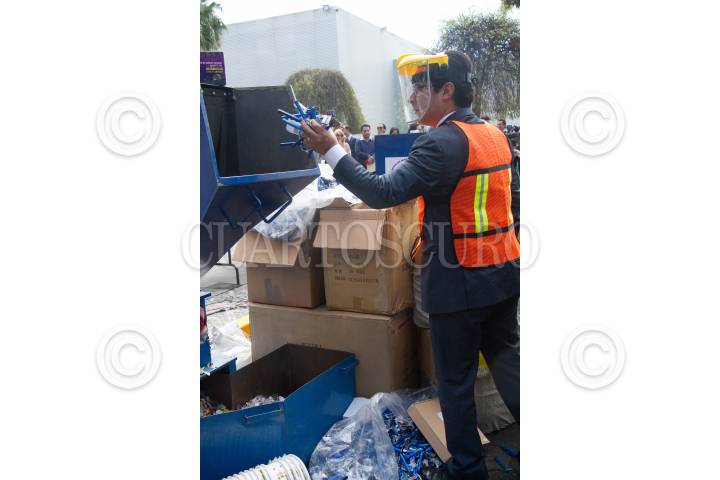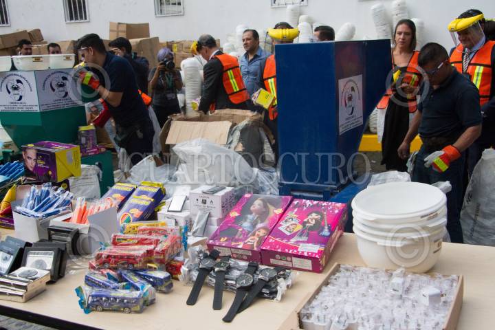 CIUDAD DE MÉXICO, 24AGOSTO2018.- Esta mañana en las instalaciones del Instituto Mexicano de la Propiedad Industrial se realizo la destrucción de artículos piratas y decomisados en aduanas del país. Maquillaje, rastrillos, lápices de colores, tenis, relojes, fueron destruídos de manera simbólica, por autoridades federales. FOTO: VICTORIA VALTIERRA /CUARTOSCURO.COM