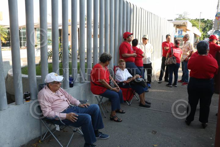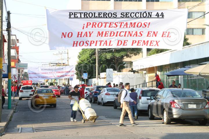 Trabajadores de la Sección 44 del Sindicato de Trabajadores Petroleros de la República Mexicana se manifestaron por los decesos de varias personas en el Hospital Regional de Villahermosa por medicamentos piratas