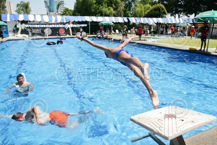 CIUDAD DE MÉXICO, 23MARZO2016.- Vacacionistas disfrutan de la poca afluencia en el Balneario Olímpico de Pantitlán, donde aprovechan para refrescarse en las albercas semivacias. FOTO: ISAAC ESQUIVEL /CUARTOSCURO.COM