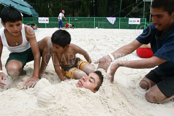 MÉXICO, D.F., 07ABRIL2009.- Decenas de niños y jóvenes se divierten en las playas artificiales ubicadas en diferentes lugares de la ciudad de México como la Casa Popular de la delegación Magdalena Contreras. Se espera que la asistencia a estas playas sea de hasta cinco mil personas el próximo fin de semana. FOTO: ISAAC ESQUIVEL/CUARTOSCURO.COM