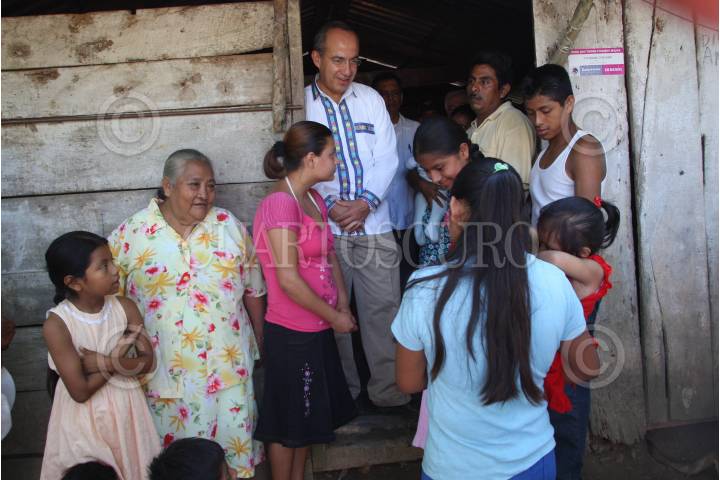 COMUNIDAD DE PLAN DE ARROYOS MUNICIPIO DE ATZALAN, VERACRUZ, 15AGOSTO2008.- Felipe Calderón Hinojosa, Presidente de México, convivió con vecinos beneficiados del programa gubernamental "Pisos Firmes". FOTO: ALFREDO GUERRERO/CUARTOSCURO.COM