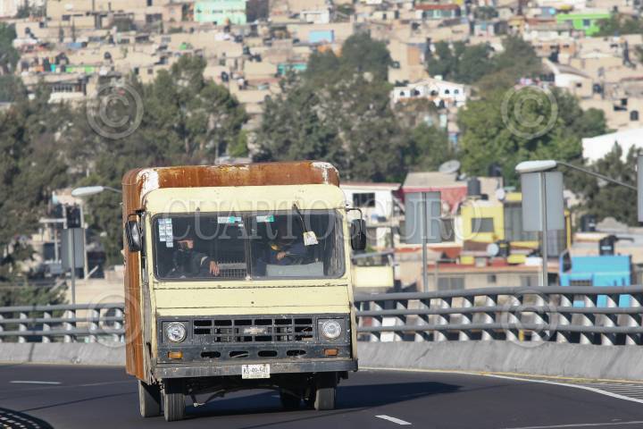 MÉXICO D.F., 22FEBRERO2010.- Camiones de trasporte público y de carga, continúan circulando por segundos pisos y vías de alta velocidad a pesar de que la semana pasada se implementó la nueva ley de transito que castiga con mayor severidad a los infractores. FOTO: SAÚL LÓPEZ /CUARTOSCURO.COM