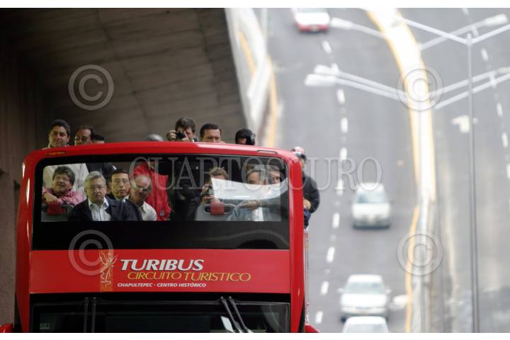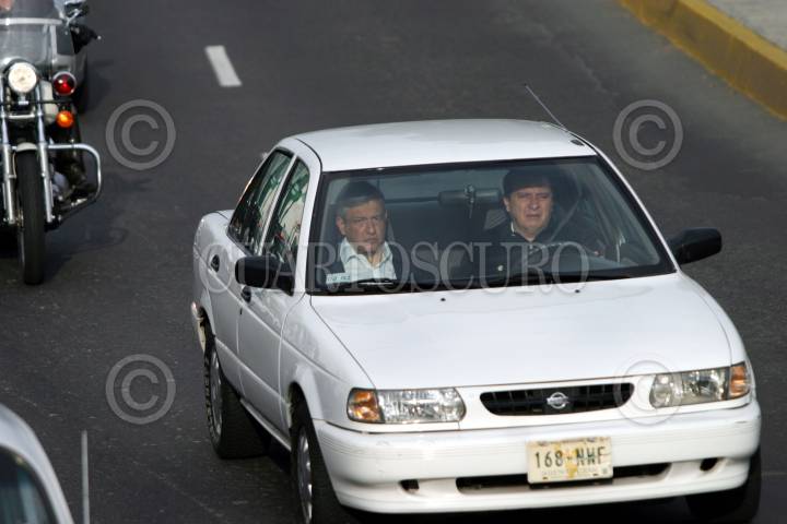 MEXICO, DF 24JULIO2005.- El jefe de gobierno Andrés Manuel López Obrador realizó un recorrido por los distribuidores, segundos pisos de la zona de San Antonio. FOTO: Miguel Dimayuga/CUARTOSCURO.COM