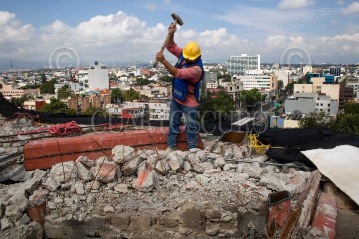 Un obrero derriba parte del edificio de Baja California 370, el cual construyo 23 metros extras de manera irregular.