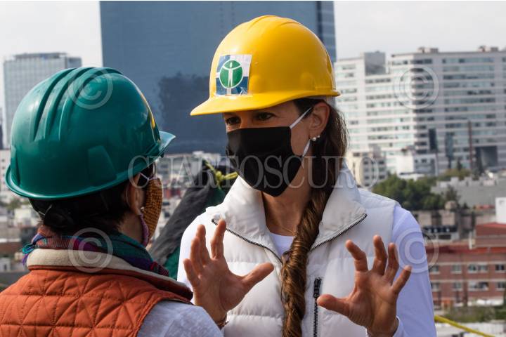 Mariana Boy, titular de la PAOT, durante la superivisión del inicio de obras de demolición.