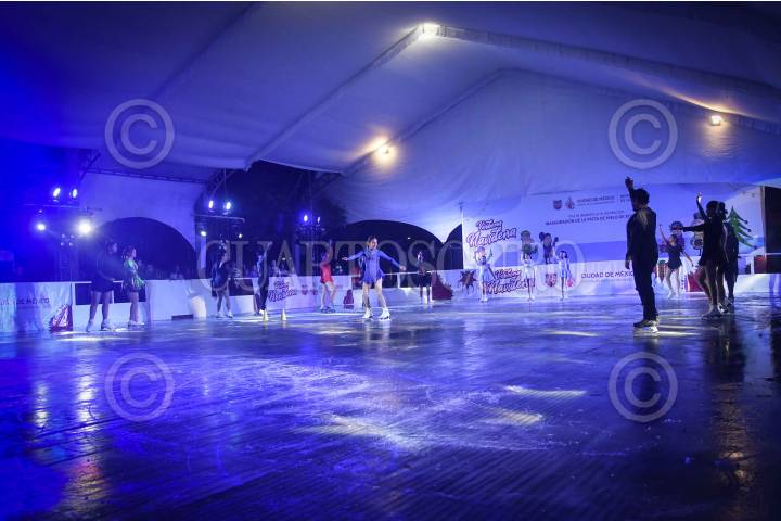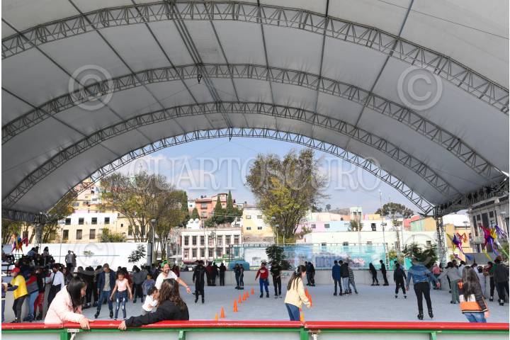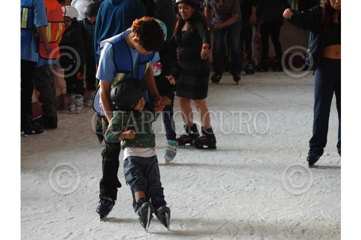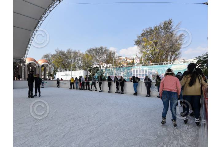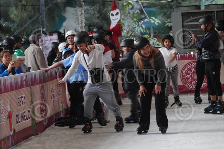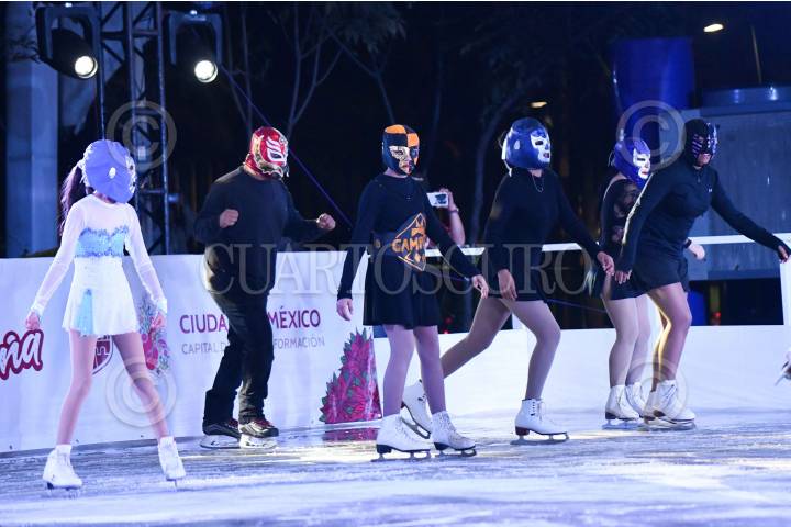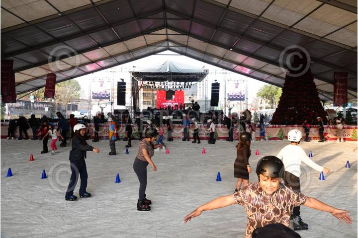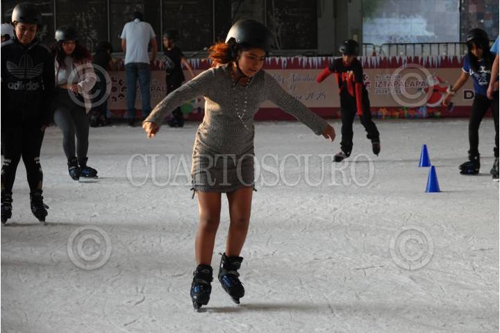 CIUDAD DE MÉXICO, 20DICIEMBRE2024.- Inauguración de la pista de hielo instalada a un costado del Deportivo Xochimilco. FOTO: MARIO JASSO/CUARTOSCURO.COM