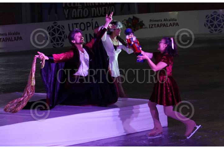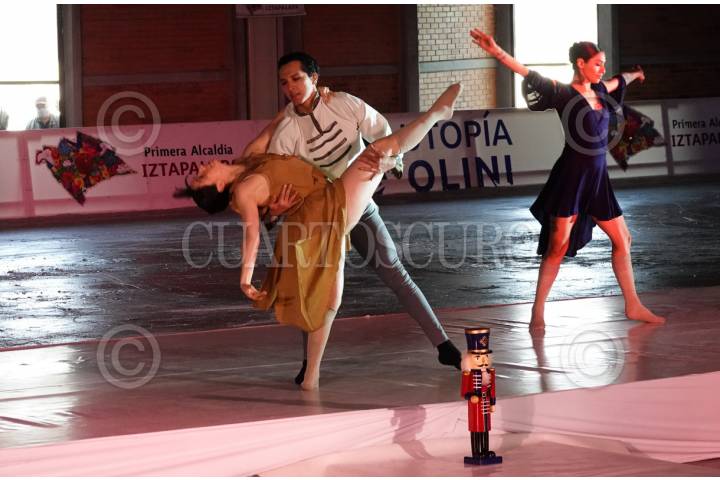 Como parte de las actividades de los festejos decembrinos, se presentó la puesta en escena "El Cascanueces" en la pista de hielo de la Utopía Olini en la alcaldía Iztapalapa