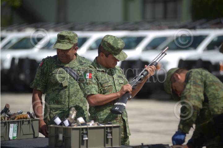 EMILIANO ZAPATA, VERACRUZ, 11JULIO2019.- Se efectuó la destrucción de armamento decomisado y a disposición de la Secretaría de la Defensa Nacional, en las instalaciones del campo militar de El Lencero, se destruyeron 711 armas decomisadas, 512 armas cortas y 119 largas que fueron puestas a su disposición por órdenes de jueces en el Estado. FOTO: ALBERTO ROA /CUARTOSCURO.COM