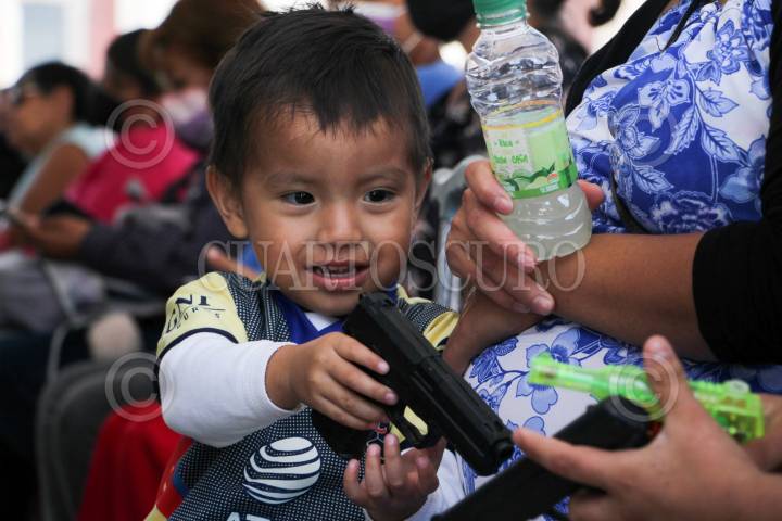 CUERNAVACA, MORELOS, 03ENERO2024.- A través de un comunicado la Secretaria de Gobernación pidió a los padres de familia que en el Dia de Reyes no regalen juguetes "que puede incitar a la violencia o a la discriminación, en especial aquellos juguetes bélicos que propician la confrontación y la agresión". Sin embargo, en el tianguis de venta de juguetes instalado en el centro de la capital se venden réplicas de armas que representan un antivalor. Ni vendedores ni autoridades, ni padres de familia atienden esta recomendación. FOTO: MARGARITO PÉREZ RETANA / CUARTOSCURO.COM