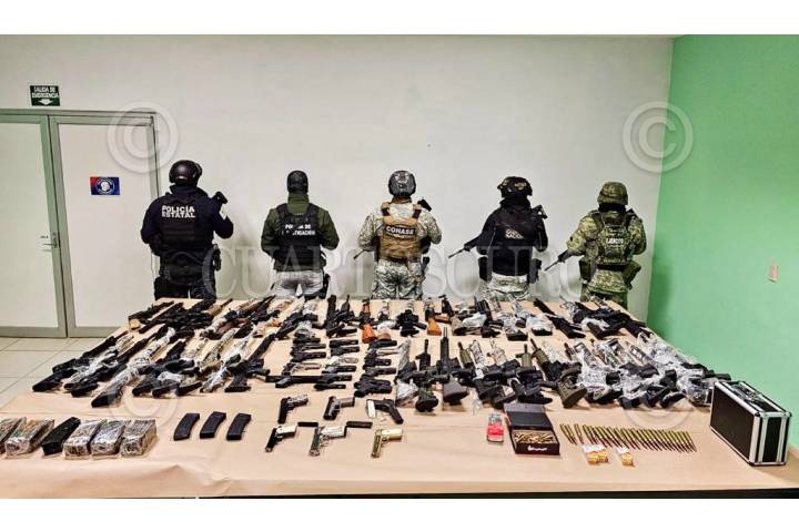 GUADALUPE, ZACATECAS. 14DICIEMBRE2023.- La Secretaría de la Defensa Nacional hace del conocimiento que en el marco de la Estrategia Nacional de Seguridad Pública y de la política de Cero Impunidad del gobierno federal, el 13 de diciembre del presente año, agentes de la Guardia Nacional y personal del Ejército Mexicano, en coordinación con la Fiscalía General de Justicia del Estado (FGJE) y Policía Estatal, aseguraron armamento, posibles drogas, cargadores y cartuchos en Zacatecas. FOTO: SEDENA/CUARTOSCURO.COM