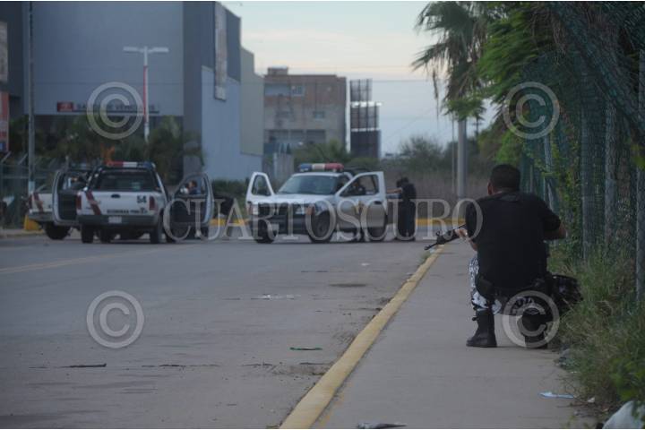 Se registró un tiroteo en el tiroteo participaron cerca de 50 pistoleros abordo de varios vehículos, el cual provocó un muerto y un herido