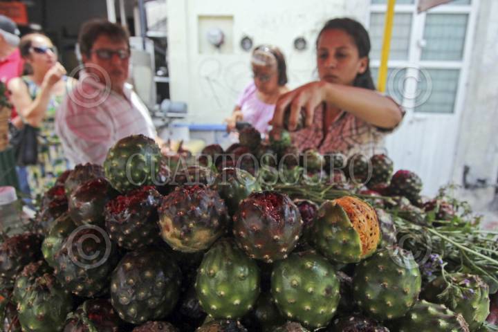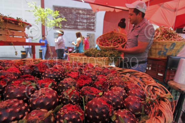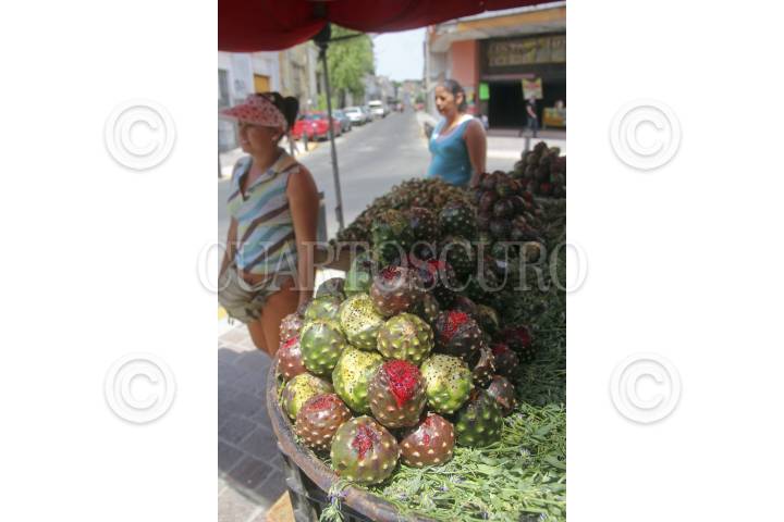 Venta de pitaya en el mercado municipal de Axochiapan, Morelos.