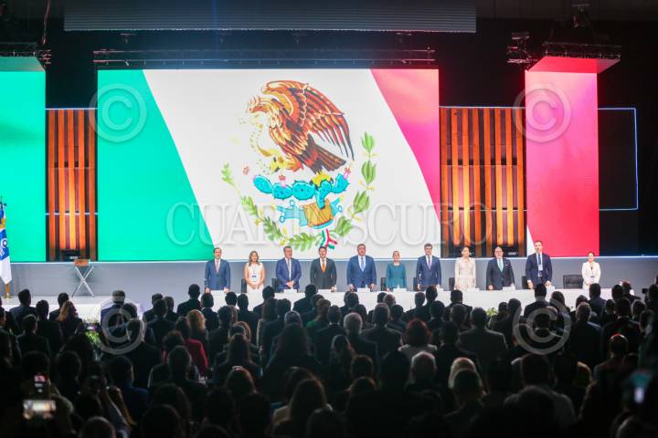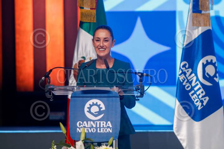 MONTERREY, NUEVO LEÓN, 20MARZO2025.- La presidenta Claudia Sheinbaum acudió a la Asamblea Anual de la Cámara de la Industria de Transformación Nuevo León (CAINTRA), en su edición número 81. La mandataria refirió el tema “Plan México”, el cual busca impulsar la producción en el país. FOTO: GABRIELA PÉREZ MONTIEL / CUARTOSCURO.COM