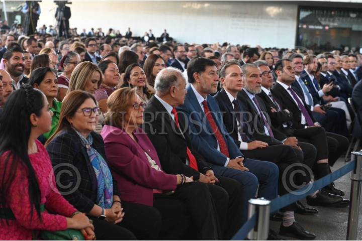CIUDAD DE MÉXICO, 03ABRIL2025.-Legisladores Martha Lucía Mícher, Alberto Anaya, Gerardo Fernández Noroña, Manuel Velasco, Adán Augusto López, Ricardo Monreal, y Sergio Gutiérrez Luna, durante el lanzamiento del Plan México presentado por la Presidenta de México, para hacer frente al alza de aranceles del gobierno estadounidense. La cita fue en el Museo de Antropología. FOTO: PRESIDENCIA/CUARTOSCURO.COM