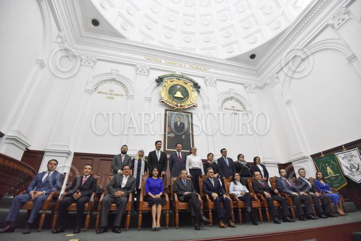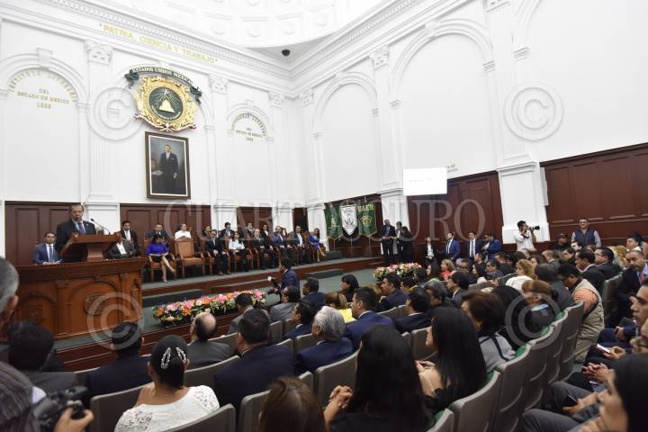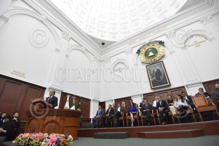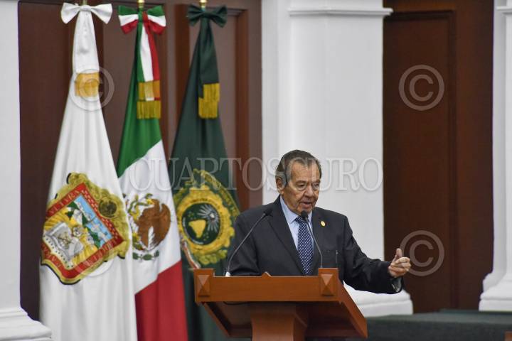 TOLUCA, ESTADO DE MÉXICO, 20JUNIO2019.- Porfirio Muñoz Ledo, Presidente de la Mesa Directiva de la Cámara de Diputados federal, la diputada Dolores Padierna, Alfredo Barrera Baca, rector de la UAEM, Maurilio Hernández González, Presidente de la Junta de Coordinación Política de la LX Legislatura del Estado de México, durante el cuarto y último Foro Regional para analizar el Plan Nacional de Desarrollo 2019-2024. FOTO: CRISANTA ESPINOSA AGUILAR /CUARTOSCURO.COM