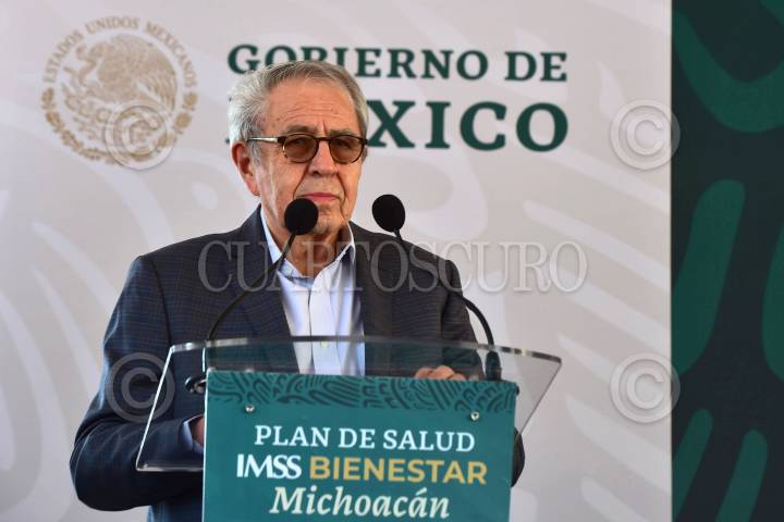 Jorge Alcocer Varela, secretario de Salud, durante su participación en el evento protocolario del Plan Nacional de Salud IMSS-Bienestar en el Hospital IMSS-Bienestar “Eva Sámano”.