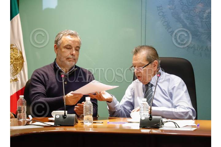 CIUDAD DE MEXICO, 03JUNIO2019.- Alfonso Ramírez Cuéllar, presidente de la Comisión de Presupuesto y Cuenta Pública, le entregó a Porfirio Muñoz Ledo, presidente de la Mesa Directiva en la Cámara de Diputados, el documento con propuestas surgidas del Foro de Consulta del Plan Nacional de Desarrollo y los Municipios de México, el cual desglosa los problemas más urgentes de sus comunidades como la inseguridad, salud, desempleo, educación, corrupción, impunidad y pobreza extrema. FOTO: CUARTOSCURO.COM