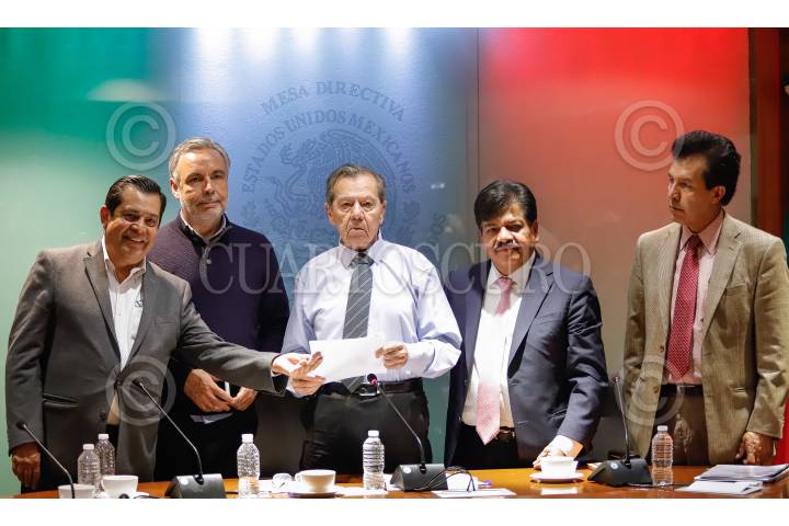 CIUDAD DE MEXICO, 03JUNIO2019.- Juan Hugo de la Raza, alcalde de Nezahualcóyotl; Alfonso Ramírez Cuéllar, presidente de la Comisión de Presupuesto y Cuenta Pública; Porfirio Muñoz Ledo, presidente de la Mesa Directiva en la Cámara de Diputados y Franciso Chiguil, alcalde de Gustavo A. Madero (GAM), dieron a conocer el documento con propuestas surgidas del Foro de Consulta del Plan Nacional de Desarrollo y los Municipios de México, el cual desglosa los problemas más urgentes de sus comunidades como la inseguridad, salud, desempleo, educación, corrupción, impunidad y pobreza extrema. FOTO: CUARTOSCURO.COM