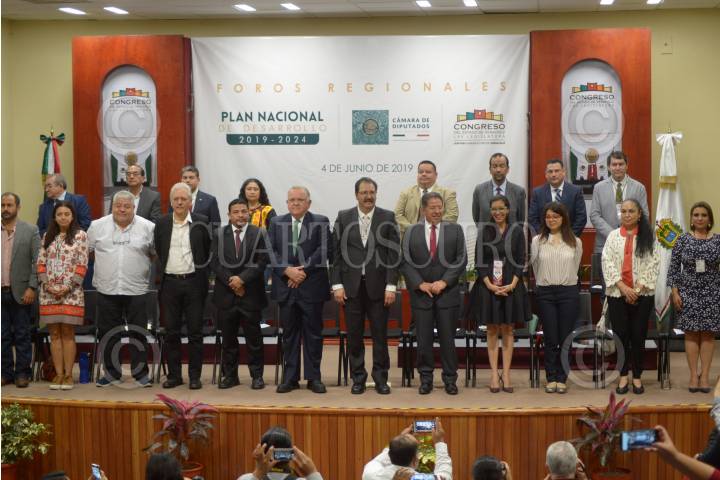 XALAPA, VERACRUZ, 04JUNIO2019.-Primer Foro Regional de análisis al Plan Nacional de Desarrollo (PND) 2019-2024, organizado por la Cámara de Diputados del Congreso de la Unión teniendo como sede el auditorio Sebastián Lerdo de Tejada, del Congreso de Veracruz, con la participación del diputado federal Reginaldo Sandoval Flores, representante del diputado Mario Delgado Carrillo, presidente de la Junta de Coordinación Política (Jucopo) de la Cámara de Diputados del Congreso de la Unión, así como del titular del Poder Judicial del Estado, Edel Álvarez y el Presidente del Congreso Local José Manuel Pozos, la senadora Gloria Sanchez, diputados federales, locales y empresarios. FOTO: ALBERTO ROA/CUARTOSCURO.COM
