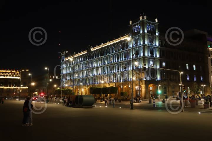 Iluminación de los edificios que rodean la plancha del zócalo capitalino.