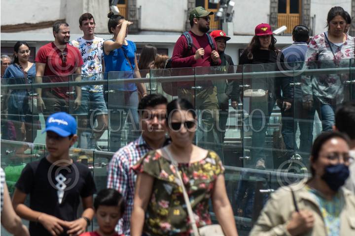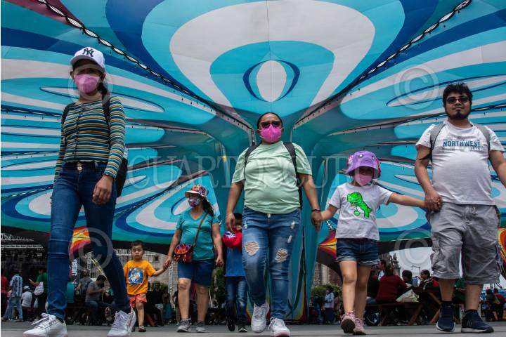 Durante las vacaciones de semana santa vacacionistas frecuentan la plancha del zócalo capitalino.
