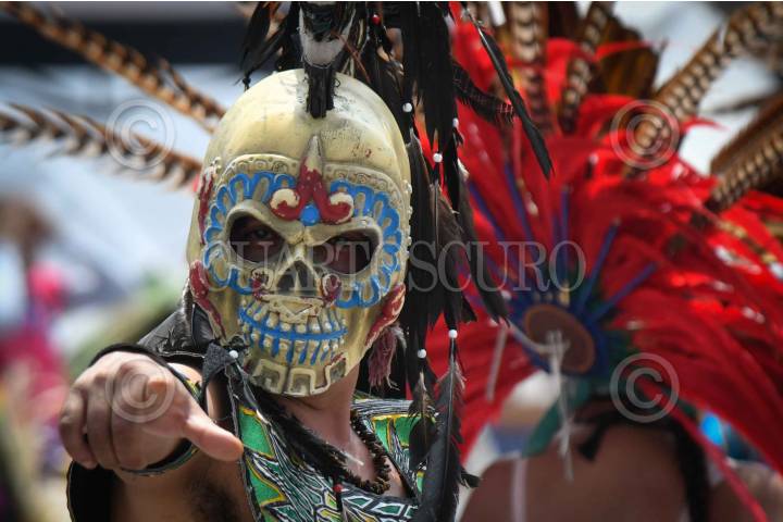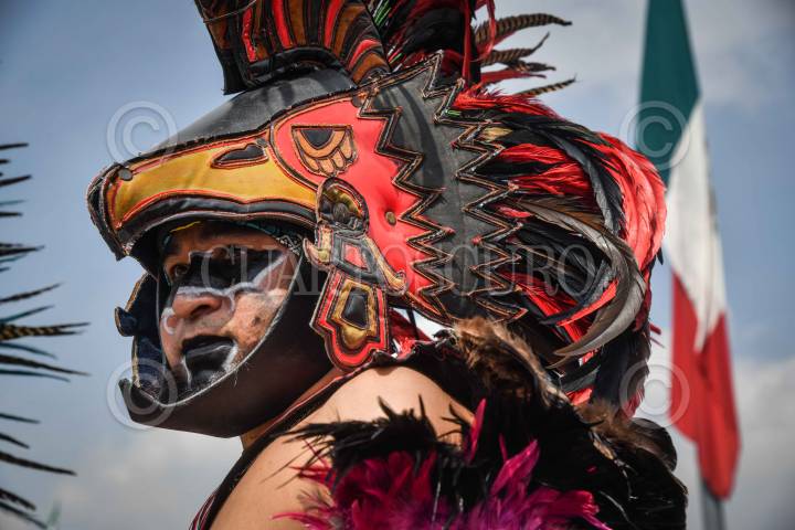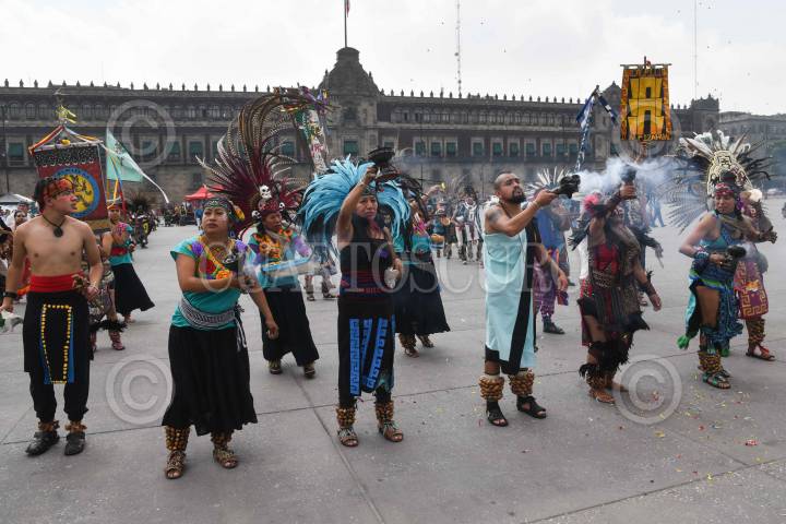 Danzantes acudieron este día a la plancha del Zócalo, para celebrar la conmemoración por el 698 Aniversario de la Fundación de México-Tenochtitlán.