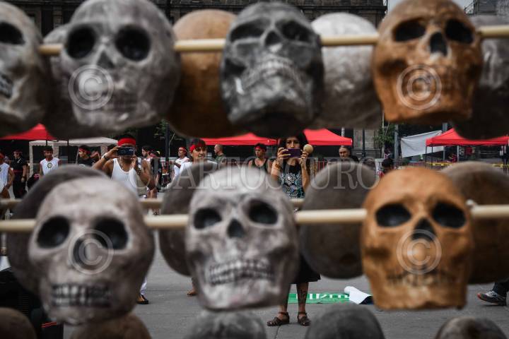CIUDAD DE MÉXICO, 22DICIEMBRE2023.- Familiares de desaparecidos organizaron una posada al exterior del zócalo capitalino. Los Familiares colocaron esferas simbólicas con los rostros de sus seres queridos en las vallas que rodean Palacio Nacional, y rompieron piñatas en representación de los obstáculos que tienen que enfrentar en la búsqueda. FOTO: MARIO JASSO/CUARTOSCURO.COM