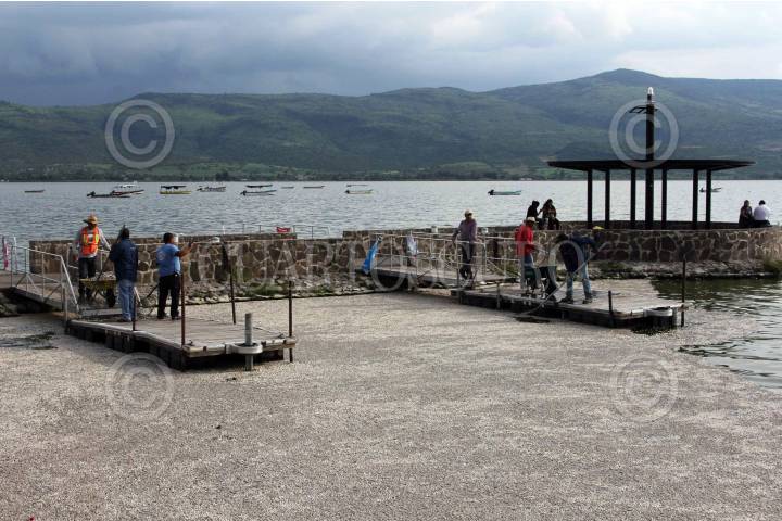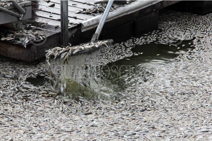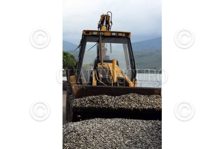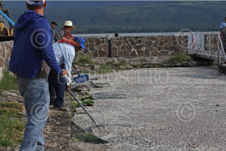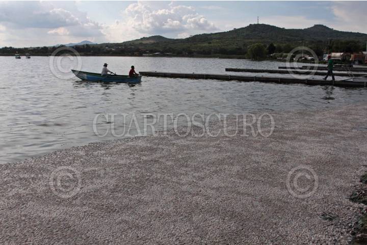 TLAJOMULCO DE ZÚÑIGA, JALISCO, 17AGOSTO2015.- Pescadores locales recogen peces muertos de la especie popocha o pintita como se les conoce en la laguna de Cajititlán. Por lo menos 25 toneladas de peces han aparecido muertos en el vaso lacustre y las autoridades están investigando si una planta de tratamiento de aguas residuales de por la zona tiene alguna responsabilidad. FOTO: CUARTOSCURO.COM