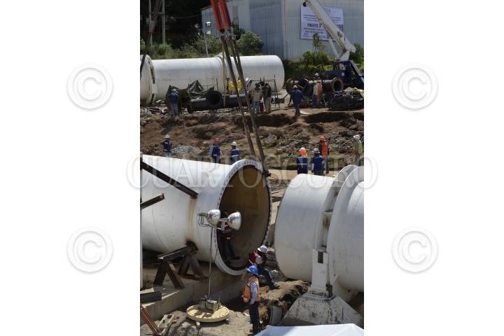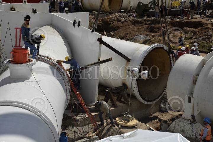 VILLA DE ALLENDE, ESTADO DE MÉXICO, 01NOVIEMBRE2018.- Más de 400 personas trabajan de forma ininterrumpida en la Planta Potabilizadora de Berros en las obras de mantenimiento del Sistema Cutzamala, en donde se realiza la unión de la Línea 1 y 2, y poder terminar el próximo sábado 3 de noviembre. FOTO: ARTEMIO GUERRA BAZ /CUARTOSCURO.COM