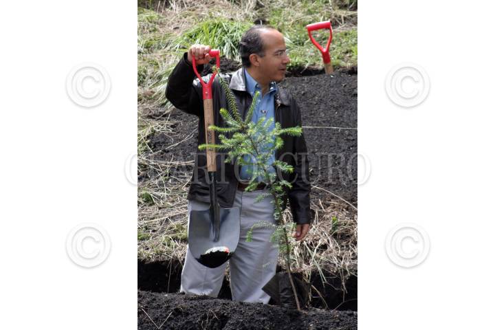 OCUILÁN, EDOMEX, 12JULIO2007.- El presidente Felipe Calderón Hinojosa plantó un árbol en el paraje de Agua Bendita, durante la celebración del Día Nacional del Árbol. FOTO: ISAAC ESQUIVEL/CUARTOSCURO.COM