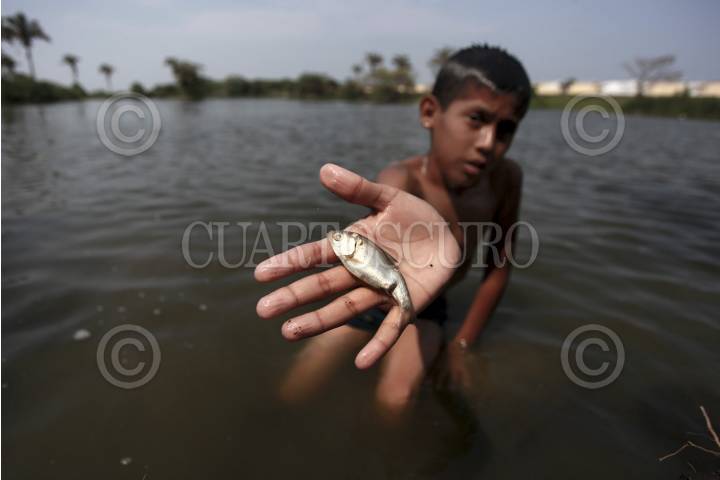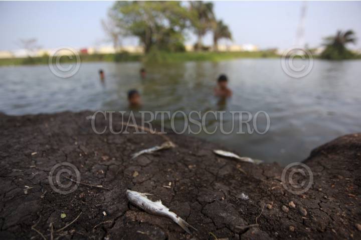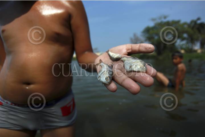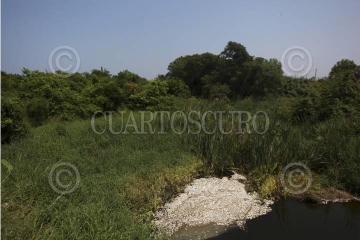 MEDELLÍN DE BRAVO, VERACRUZ, 17ABRIL2015.- Cientos de peces aparecieron muertos a un costado de las compuertas de las plantas de tratamiento de agua en la laguna artificial del fraccionamiento Puente Moreno, en donde niños y jóvenes continúan refrescándose del intenso calor. Hasta el momento no se han detectado las causas de la mortandad. FOTO: FÉLIX MÁRQUEZ /CUARTOSCURO.COM