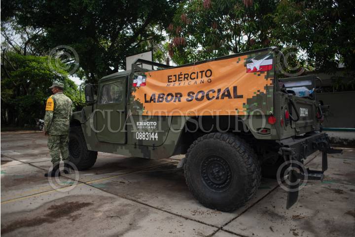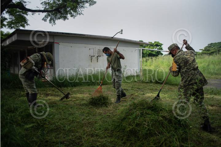 Soldados mexicanos, acompañados de padres de familia y maestros, realizaron la limpieza de escuelas de educación básica