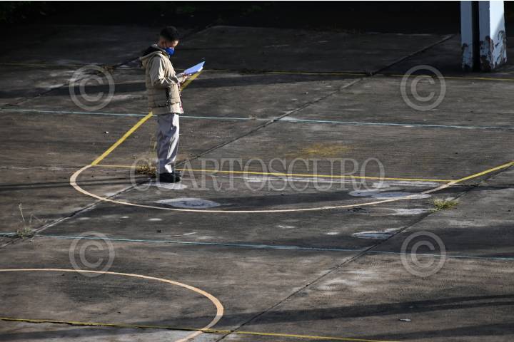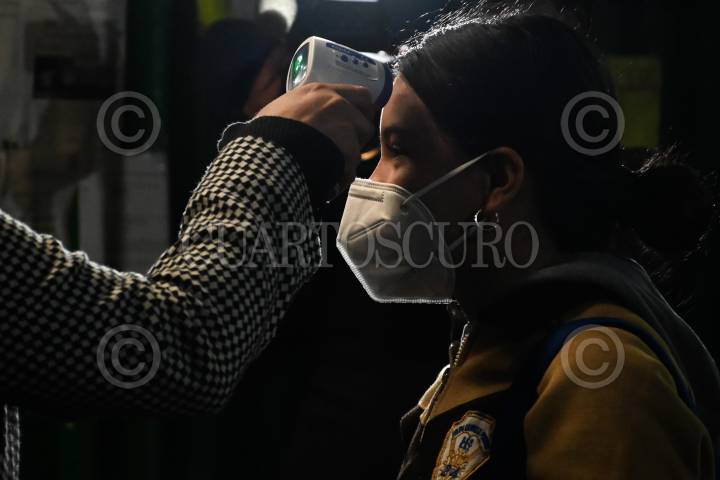 Toma de temperatura a una joven antes de su ingreso a la escuela.