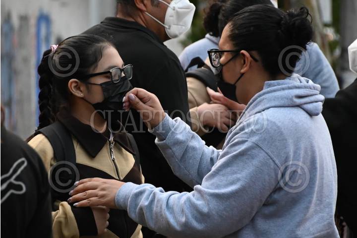 Padres de familia esperan el ingreso y la salida de sus hijos al término del examen comipems.