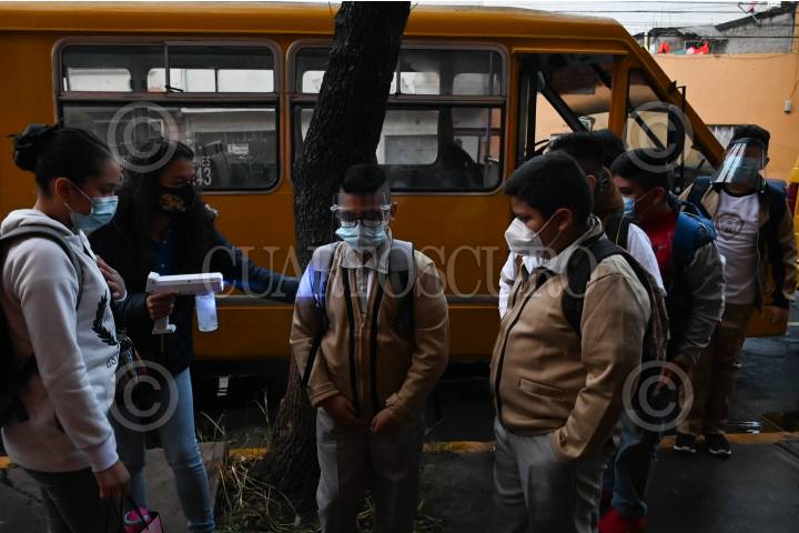 Sanitización de alumnos de secundaria antes de su ingreso al plantel.