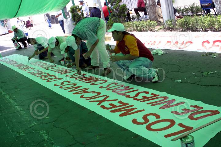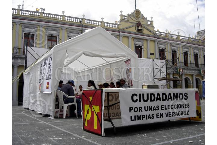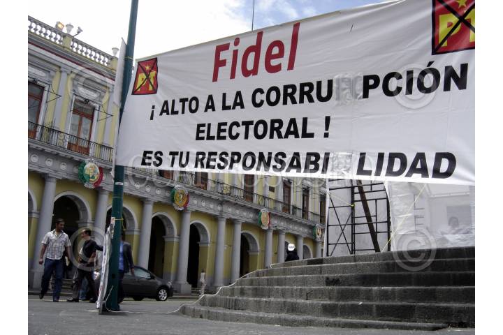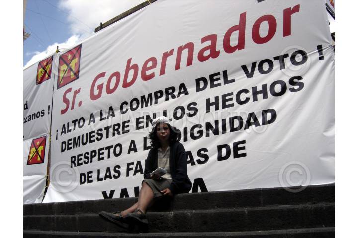 XALAPA, VERACRUZ 28AGOSTO2007.- El partido del trabajo organizó un planton con mantas para exigirle al gobernador Fidel Herrera Beltrán respete las campañas y deje de intentar comprar el voto de la ciudadanía. FOTO: JORGE VALDÉS/CUARTOSCURO.COM